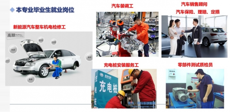 学完所有课程,毕业后,我可以从事:去电机电池等零部件企业做测试员、去整车制造厂做装配技术人员、去售后企业做汽车检测维修、去充电桩企业做充电桩安装服务技术员等等。