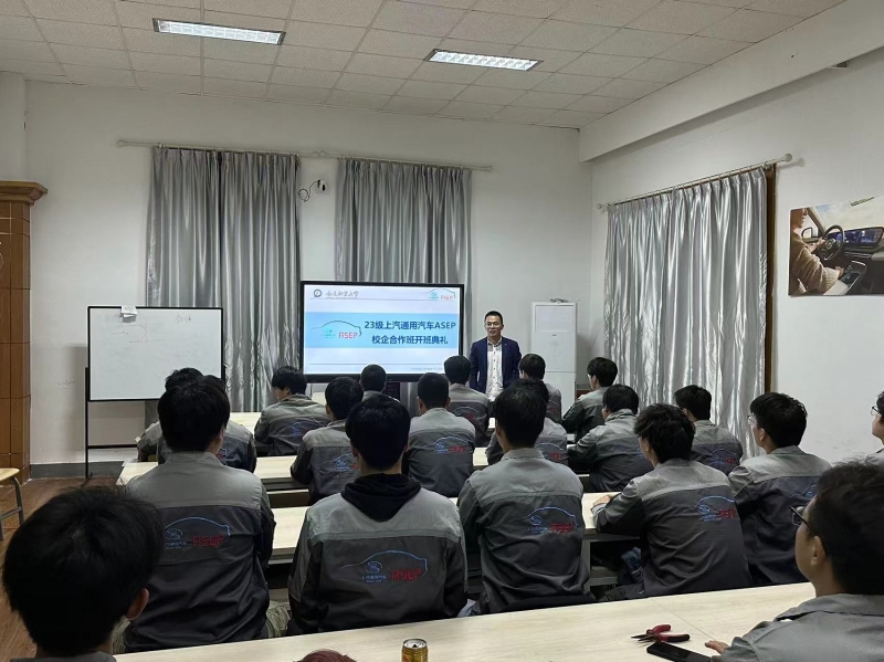 10月15日下午,买球官方网站在上汽通用汽车ASEP实训基地举行上汽通用汽车ASEP校企合作2023级项目班开班典礼。合作企业代表蒋启鑫、项目负责人谢学飞、项目组教师及2023级ASEP班全体同学参加会议。
