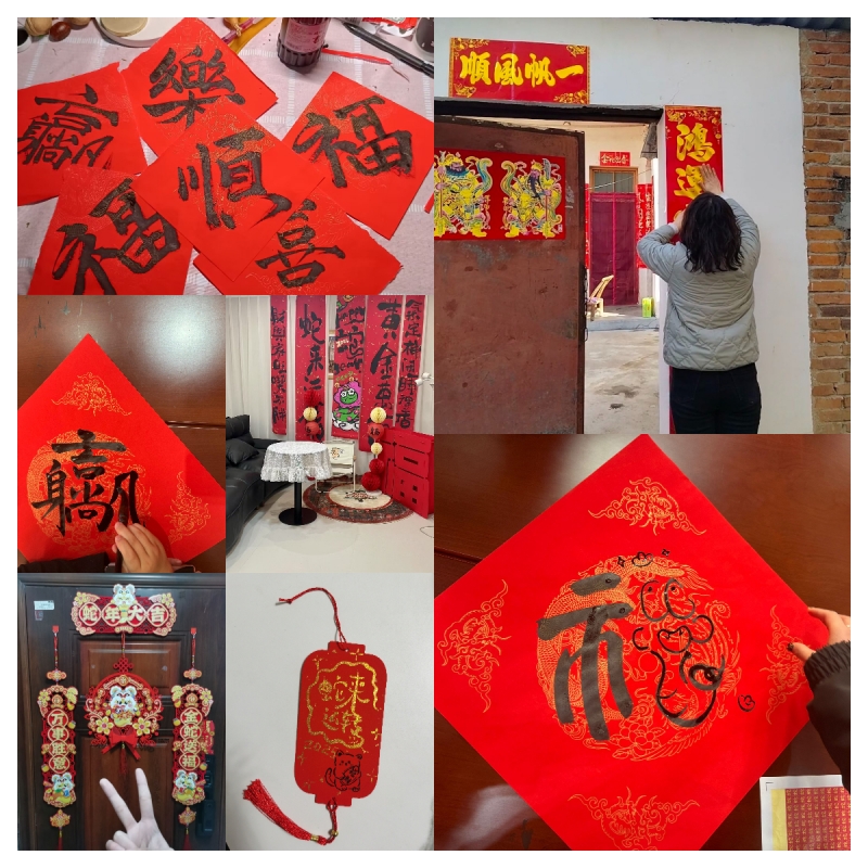 一笔一划,皆是深情。同学们手执笔墨,将对新春的拳拳祈愿,化作一幅幅寓意吉祥、辞藻优美的春联。他们以最传统的方式,将心中的美好祝愿凝聚于字里行间。红纸如火,映衬着节日的喜庆与家的温馨;黑字如炭,沉稳而庄重,记录着岁月的痕迹与对未来的期盼。春联的贴挂,不仅为家门平添了几分节日的氛围,更将家人间无尽的思念与深深的祝福,化作一道无形的纽带,紧紧相连。