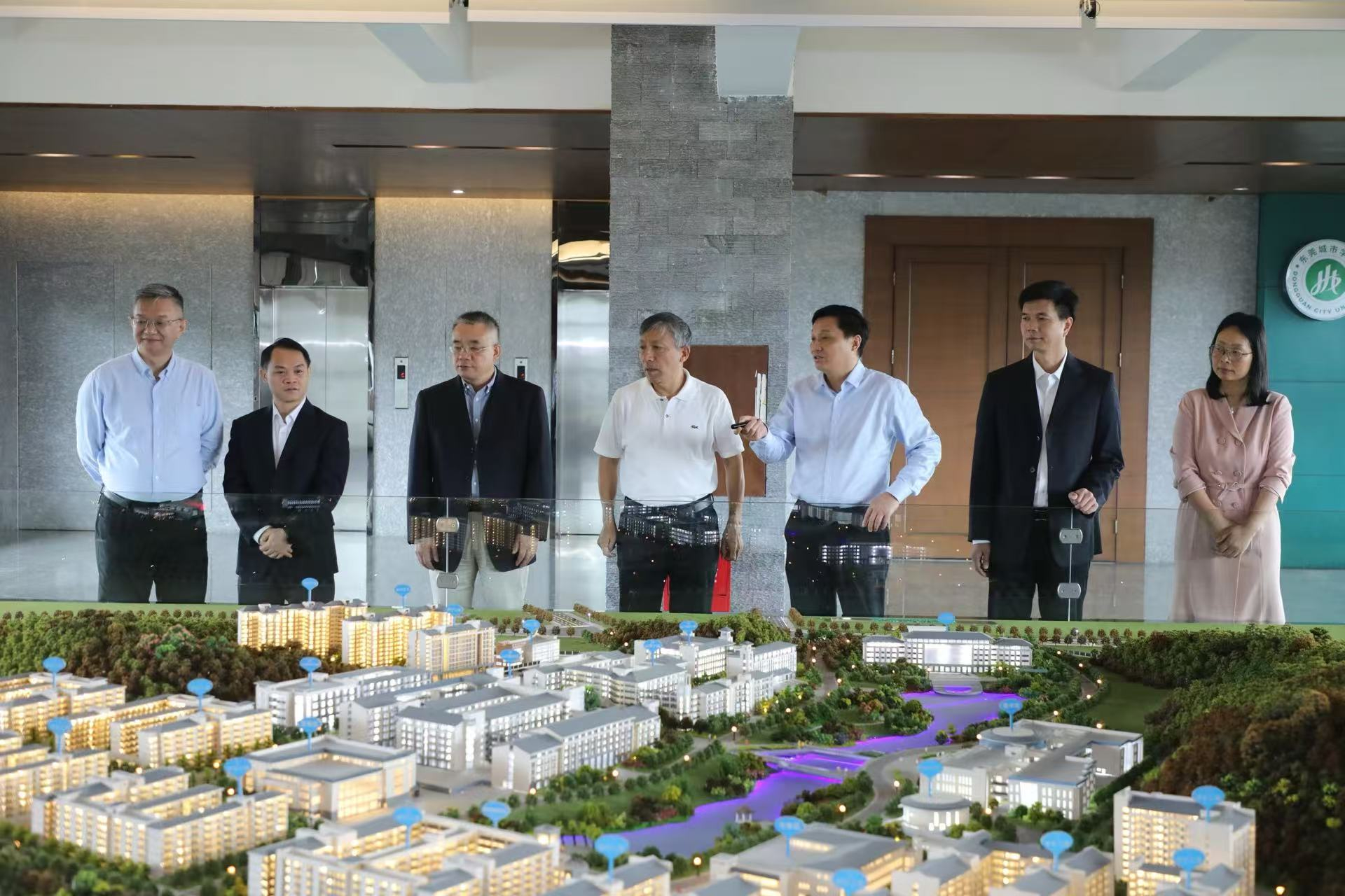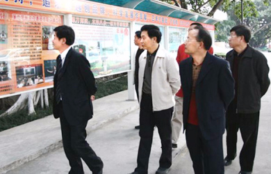 时任中央政府驻港联络办副主任、第十一届全国政协常委黎桂康(左一)在香港东莞同乡会会长王国强先生(左二)陪同下视察我院