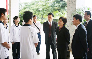 时任教育部体卫艺司司长杨贵仁(左一)视察校园