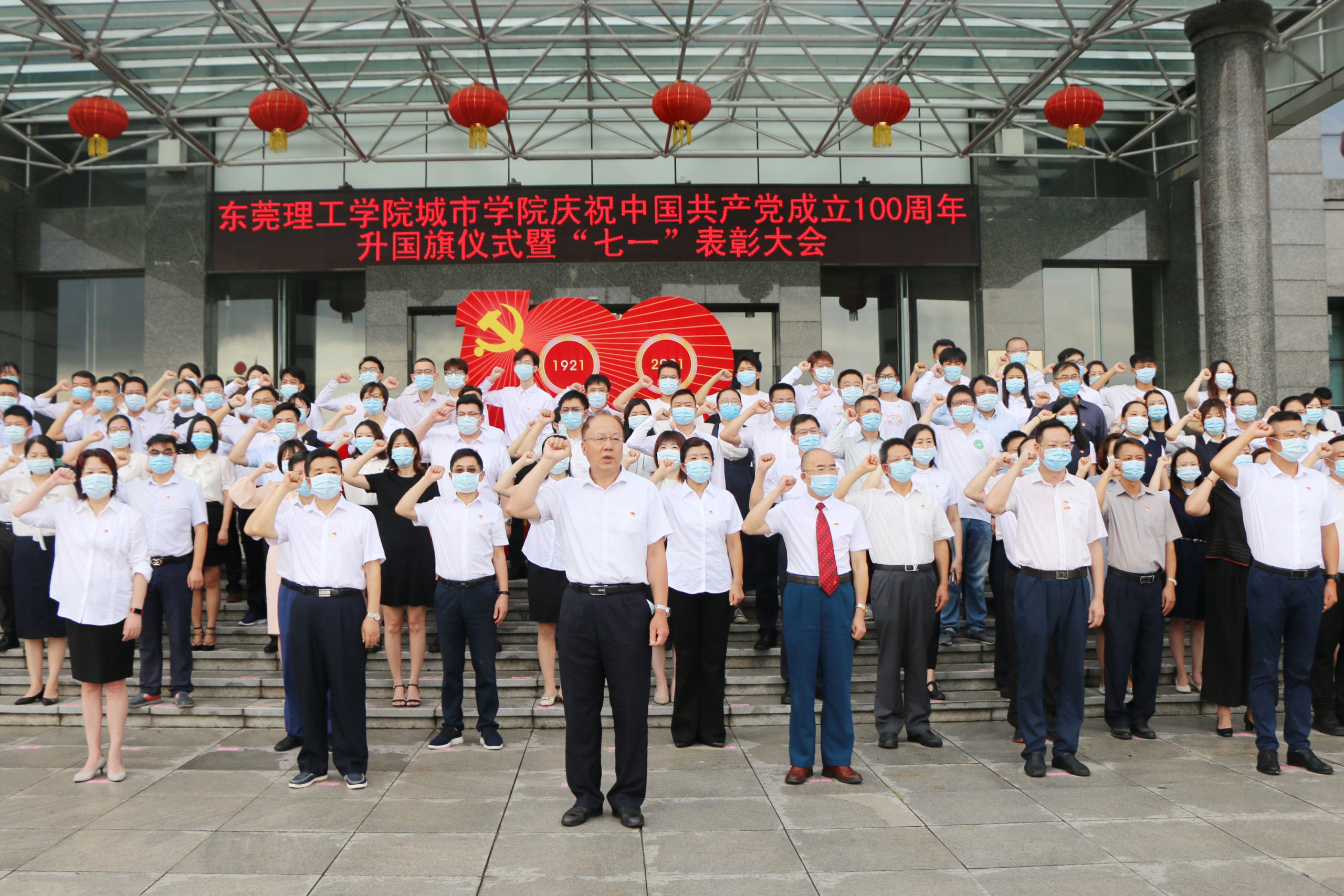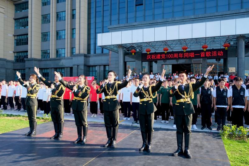 6月3日下午,学校在行政楼前举行庆祝建党100周年“升国旗交流展示暨同唱一首歌”活动。寮步镇退役军人服务中心副主任李敏怡、鸿发教育集团副总经理李奎山、寮步退役军人服务中心文拥军、泉塘派出所警长卢耀坤、寮步镇人民武装部干