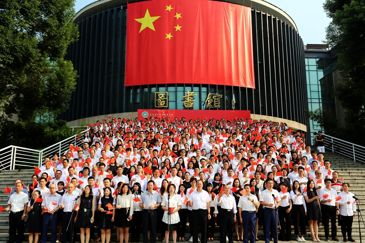 为热烈庆祝中华人民共和国成立70周年,9月26日下午,beat365隆重开展“不忘初心、牢记使命”主题教育—— “初心永在,放歌祖国”唱颂经典活动。学校党政领导班子,全体教师和各二级学院学生上万人参加了活动。 金秋时节,