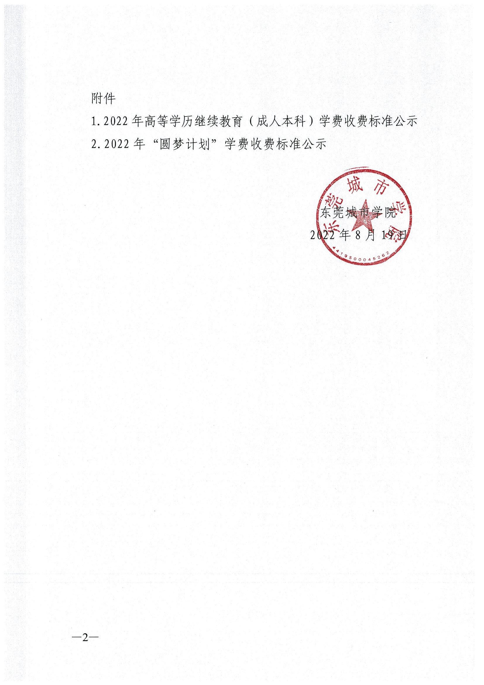 关于2022年高等学历继续教育(成人本科)和“圆梦计划”收费标准公示