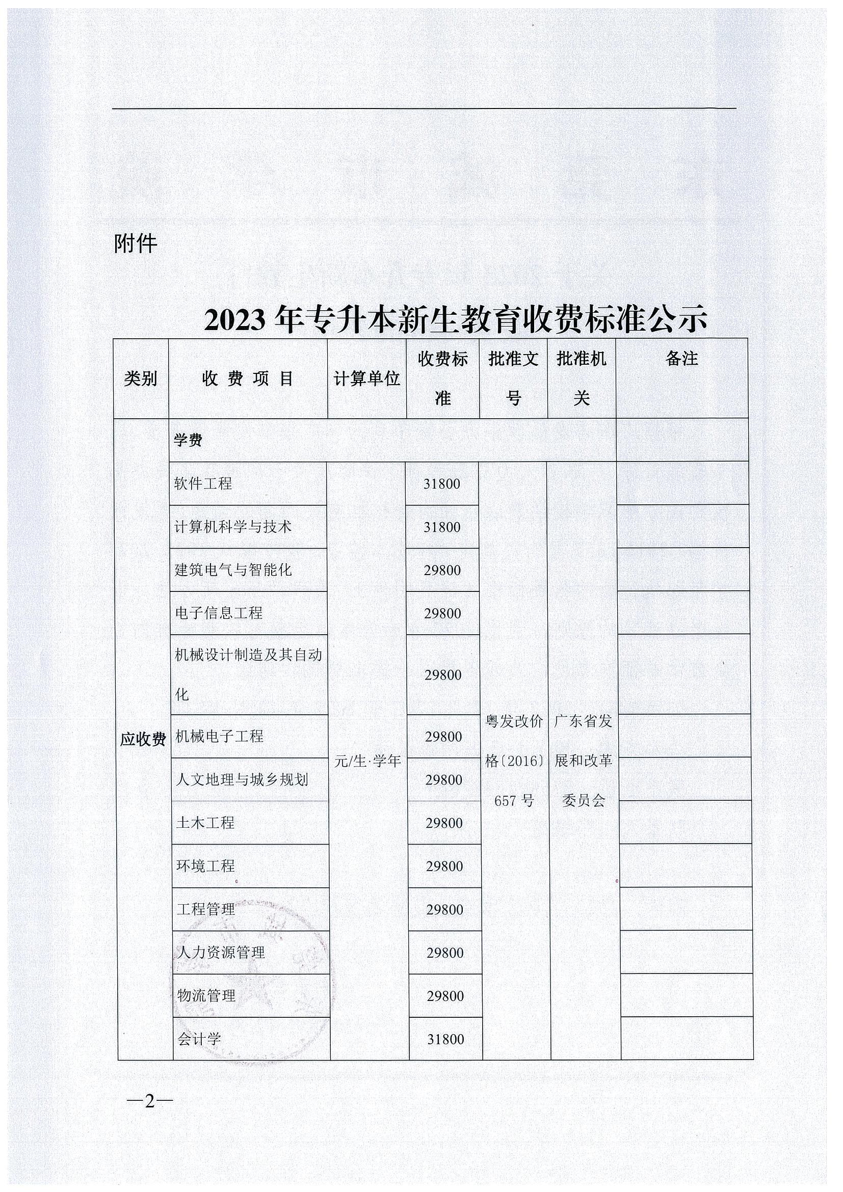 关于2023年专升本新生教育收费标准的公示