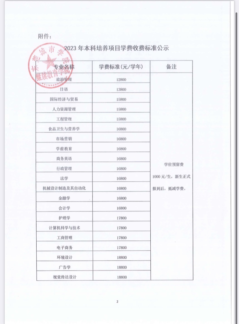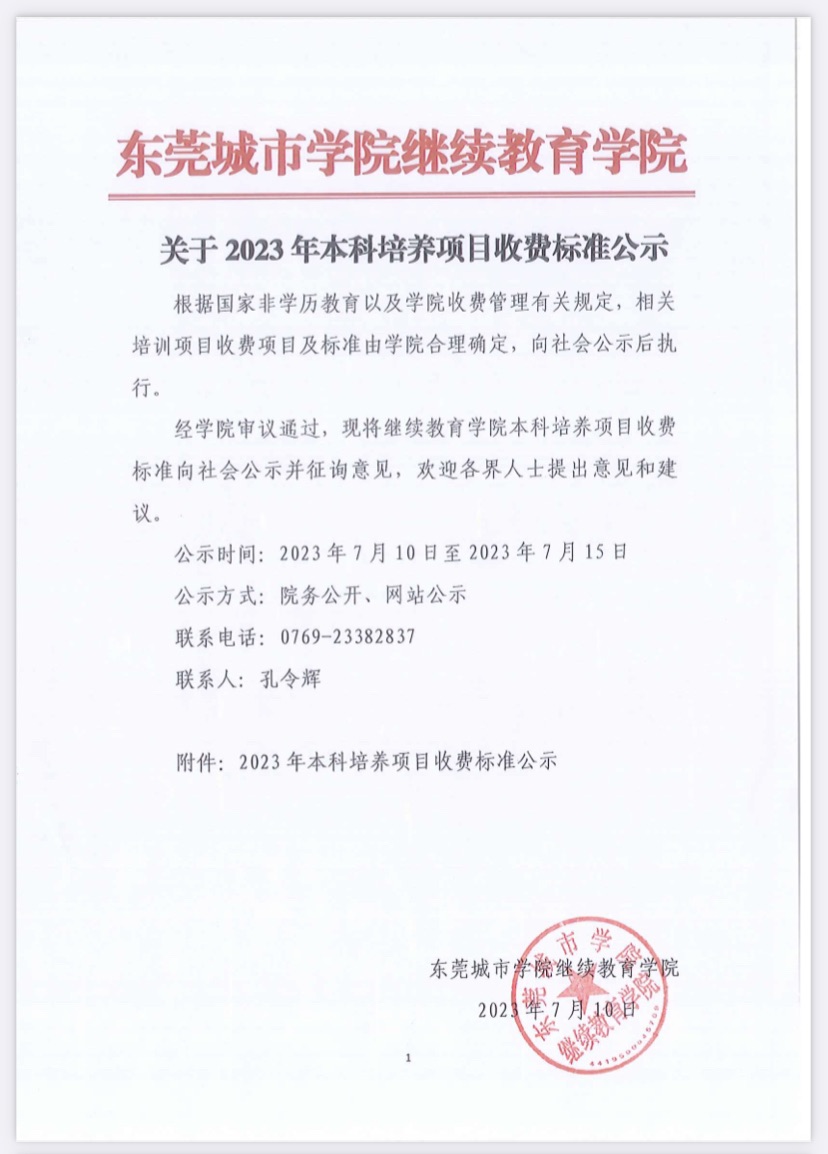 关于2023年本科培养项目收费标准公示
