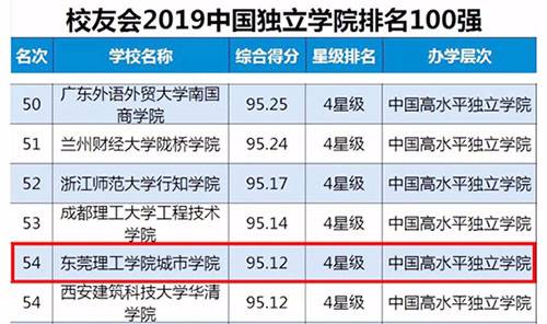 12月24日,艾瑞深中国校友会网正式发布了《2019中国大学评价研究报告——高考志愿填报指南(校友会版)》。报告显示,在“校友会2019中国独立学院排名100强”中,我院以95.12综合得分位于第54位,属于四星级高水平独立学院。 据介绍