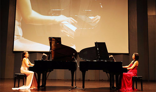 12月15日晚, 由我院艺术系教师、公立台湾师范大学音乐系在读博士赵轩和来自台湾在读博士黄宇真举办的“诗与画”——肖邦与德彪西双钢琴音乐会在东莞玉兰大剧院上演。今年是法国作曲家德彪西逝世100周年,音乐会不仅展现两位年青钢