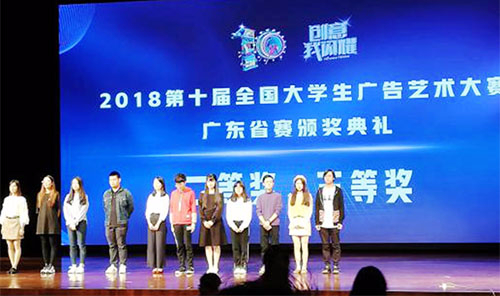 10月19日,由教育部高等教育司、广东省教育厅主办的2018年第十届全国大学生广告艺术大赛(广东赛区)颁奖典礼,在北京师范大学—香港浸会大学联合国际学院举行。我院创意设计学院组织了数十支学生队伍参加了竞赛,共获得二等奖7项
