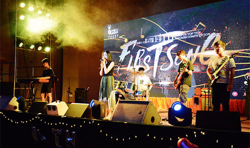 5月20日晚,中国新歌声东莞理工学院城市学院第十四届校园十大歌手大赛决赛在学术报告厅举办。东莞知名音乐人,中国新歌声导师纪国维、学生处副处长罗文芳、艺术系党总支副书记张宏渝担任大赛评委嘉宾。 WONDER4乐队的开场表演“