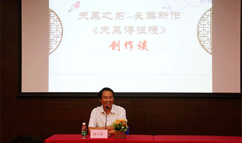 4月25日下午,著名作家周大新在我院举办“天黑之前——长篇新作《天黑得很慢》创作谈”讲座。讲座由教务处和文传系联合举办,文传系师生代表聆听了讲座。 周大新新作《天黑得很慢》以万寿公园的七个黄昏串连而成,把人的一生