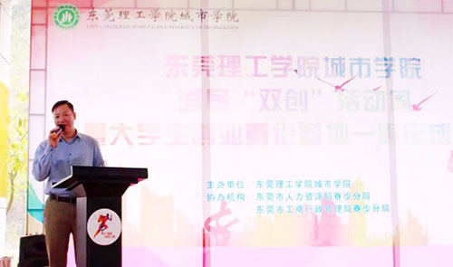 我院创新创业活动周暨大学生创业孵化基地一周年成果展示活动,4月19日下午正式开幕。活动得到了东莞市人力资源局寮步分局、市工商行政管理局寮步分局的大力支持。 东莞市人力资源局寮步分局钟局长坚玉副、东莞市工商行政管理