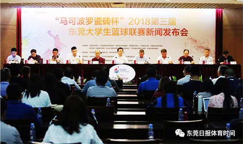 4月19日下午,东莞市第三届大学生篮球联赛(DUBA)新闻发布会在东莞市报业大厦召开。 王卫平院长、院长助理林江龙、体育教学部主任王艳云及男篮教练员钱丽娜应邀出席新闻发布会。出席发布会的还有大联赛组委会主任、东莞报业集
