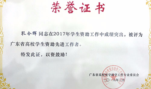 孔令辉、黄静惠老师获广东省高校资助工作奖