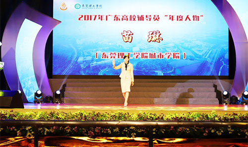 元月7日,在第七届广东高校辅导员职业能力大赛暨2017年广东高校辅导员“年度人物”评选活动总结晚会上,东莞理工学院城市学院文学与传媒系党总支副书记、辅导员苗琳老师凭借过硬的政治思想素质、爱岗敬业的职业精神、深厚的专业理