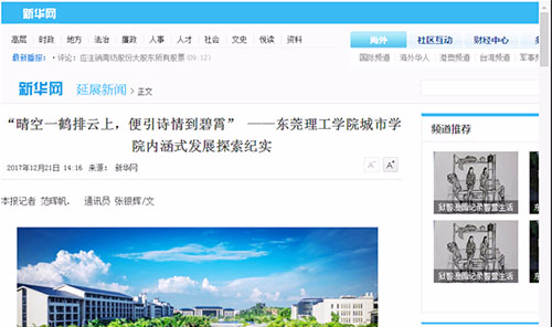 12月21日, 新华网以“晴空一鹤排云上,便引诗情到碧霄”为题,对我院内涵式发展探索纪实进行了大篇幅的报道。 这是继11月27日东莞日报刊发了《东莞理工学院城市学院内涵式发展探索纪实》后,引起了中央级媒体的关注与报道。报道