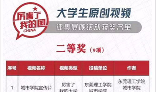 《城市学院宣传片》荣获团中央大学生原创视频征集展映活动二等奖