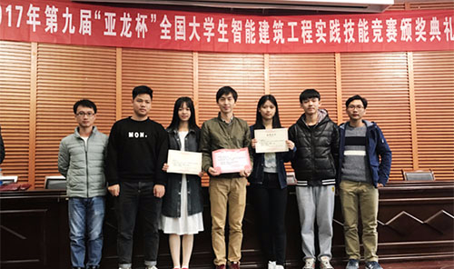 11月10日-12日,第九届“亚龙杯”全国大学生智能建筑工程实践技能竞赛在江苏盐城工学院举行。我院建筑电气与智能化专业冯晓璐、黄燕佳、朱泽林、谢伟彬、李曦、赖梓文同学(指导老师:陈振伟、李洪超、贺婉如)荣获大赛团体三等奖,