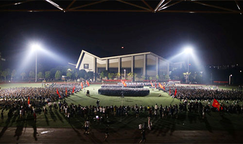 9月18日晚,连续9天艰辛的军训和入学教育之后,军训中的新生们迎来了激情之夜——红歌大赛。大家唱响红色旋律,一展青春激情和爱国热忱。 当晚,红歌大赛尚未开始,17个连队在学院运动场两侧席地而坐,一遍遍练习拉歌动作和口