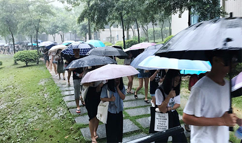 今天是我院新学期开学的第一天。尽管一早受台风“玛娃”的影响,风骤雨急,但全体师生员工精神振奋,按时开启了新学期“开学第一课”。 上午第一节前,师生们冒雨按时来到教室,个个精神抖擞、兴致高昂,认认真真地开始了新