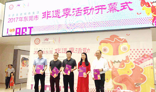 5月20日上午,2017年东莞“文化四季”之“非遗季”系列活动在东莞市民艺术中心举行。黄兢副院长和文传系宋秋敏主任应邀出席活动开幕式,并代表我院与东莞市文化馆确定了馆校共建非遗文化合作意向,再次凸显了我院对传统文化、东莞