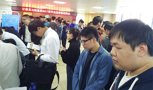 继2月25日成功协办“智聚联科,智造未来”2017年东莞春季大型中高端人才招聘会后,3月2日,我院招生就业处又举行了计信系与机电系联合专场招聘会,打响了我院就业服务工作——“春风送温暖,齐力助就业”活动的第一炮。这也是我院