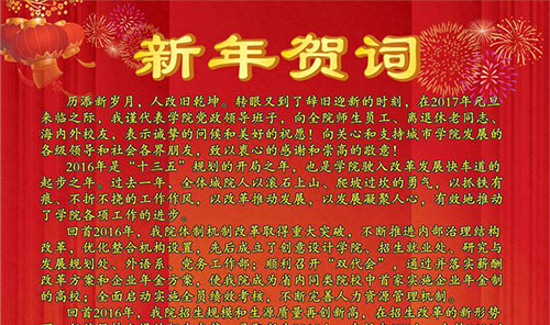 历添新岁月,人改旧乾坤。转眼又到了辞旧迎新的时刻,在2017年元旦来临之际,我谨代表学院党政领导班子,向全院师生员工、离退休老同志、海内外校友,表示诚挚的问候和美好的祝愿!向关心和支持城市学院发展的各级