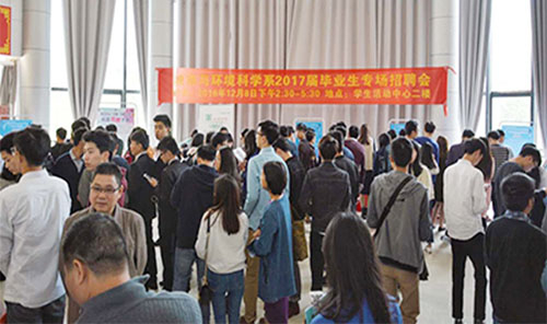 12月8日下午,由我院招生就业处主办,管理系、金贸系、城环系联合承办的2017届毕业生专场招聘会分别在映月广场、学生活动中心举行。学院党委副书记章德胜和招生就业处处长孔增强、就业中心主任江小卫,管理系主任张佺举、党总支书