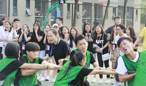 团结就是力量 学一篮球场下挤满了观赛的人群,正在这里进行的是激烈的拔河比赛。参赛选手的身高体重、发力方式,都影响着拔河比赛,但是团结才是称霸赛场的决定性因素。与此同时,啦啦队呐喊助威的气势,也影响到赛场