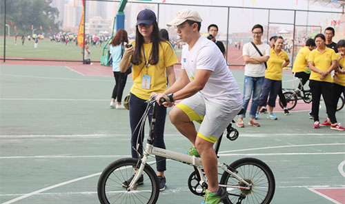 冠军的自信 篮球场上,教工慢骑几轮激烈的比赛下来,冠军终于诞生,院团委副书记陈浩华老师获得了这一届运动会教工慢骑冠军。这是他第三次参加校运动会教工男子自行车慢骑,也是他第三次获得教工男子慢骑的冠军。 “去年