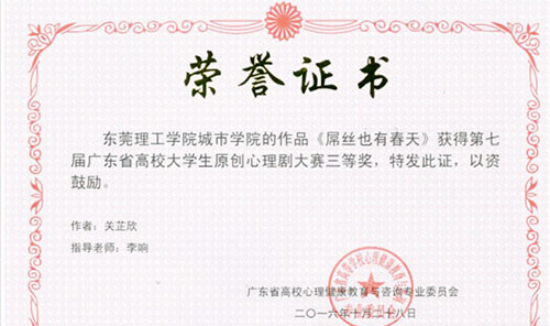 近日,记者从广东省高校心理健康教育与咨询专业委员会获悉,我院多项参赛心理作品在广东省系列比赛中斩获佳绩。其中,《人际关系心理问题咨询》、《为什么他们总是针对我》作品分别在“第二届广东省高校大学生心理健康教育与咨