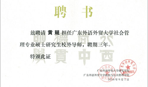 我院黄兢副院长受聘广外硕士研究生校外导师