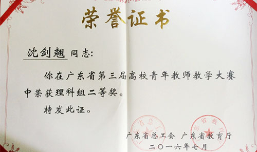 来自广东省第三届高校青年教师教学大赛的好消息,我院沈剑翘老师荣获该项赛事理科组二等奖,同时我院荣获大赛优秀组织奖。 据了解,在今年7月2日至4日广东省第三届高校青年教师教学大赛已于在华南理工大学、暨南大学、华南农