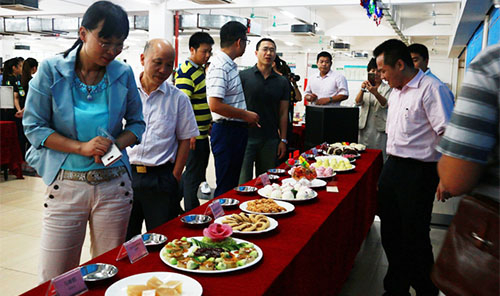 由后勤饮食服务中心主办、院学生会协办的第四届优质服务月之“面点比拼暨厨艺大赛”,5月19日在荔香园二楼餐厅举行,比赛的选手由各饭堂厨师及我院学生代表组成。 副院长周庆,学生处处长杜鹏举,总务处处长翟耀明、副处长陈