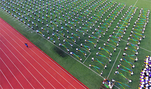 舞动青春 旭日东升,风高气爽。 校运会开幕式上,由700名大一新生组成的彩带组,可谓抢足了观众的眼球。她们身着白色上衣,黑色长裤,手上拿着七色彩虹带,翩翩起舞……婀娜多姿的姑娘们,用优美的舞姿演绎着“青春飞扬
