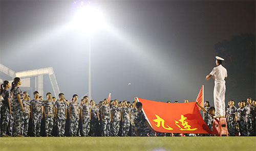 “九连,来一个!来一个,九连!”,9月13日晚拉歌声此起彼伏,2015级5000多名新生齐聚城院操场拉开“红歌大合唱”比赛帷幕。 比赛现场,一连的同学们摇晃着手机闪光灯——“闪亮”登场,宛若一片璀璨的星海,引来了阵阵欢呼。
