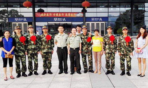 我院征兵工作再传喜讯,2014级金融学3班张晓馨等30名同学光荣参军入伍。9月12日清晨,学院征兵工作人员到火车站为参军入伍的同学送行。 今年,我院利用网络、广播台、横幅、宣传画册等方式,大力宣传国防法和有关政策,引导学生