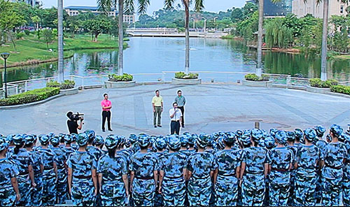 9月10日,杨敏林院长、黎建烨董事、黄兢副院长在学生处杜鹏举处长的陪同下,来到我院2015级新生军训中间,看望慰问正在炎热天气下军训的教官和师生。