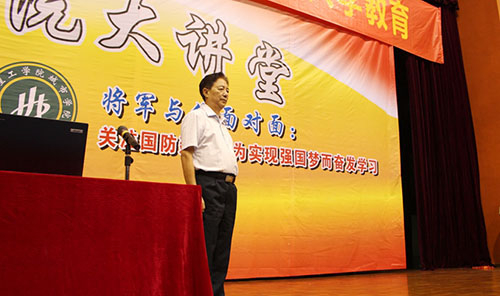 在“九一八”前夕,我院邀请海军某部将军秦兴和少将在综合馆为2014级军训新生作国防知识讲座。据了解,秦将军曾任沙角部队政委、东海舰队政治部副主任、南海舰队政治部副主任、广州舰艇学院政治部主任、海军指挥学院政治部主任及