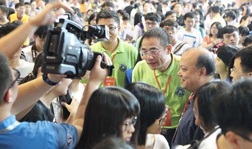 上午9时,迎新工作进入高潮,综合馆人头攒动,各系报到点排起了条条“长龙”。东莞理工学院党委副书记吕琦元、城市学院院长杨敏林等领导来到迎新工作现场,看望前来报到的新生及家长,慰问参与迎新工作的师生。他们对井然有序的