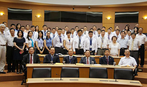 7月14日,党委书记王卫平率队的赴台研修班41位老师一到台湾高雄义守大学,放下行装,就开始投入紧张的学习取经。 研修班得到了义守大学萧介夫校长、颜志荣副校长等教学管理团队的热情接待。 荣誉校长傅胜利亲自为培训班上
