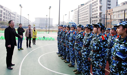 1月10日下午,院长杨敏林到军训现场看望军训学生,了解军训情况。 在五连一排,杨院长与军训新生亲切交谈,并勉励军训同学积极军训,煅练好身体;在四连,杨院长热情地与正在准备拉歌比赛的同学们拍了张大合照,并向辅导员及