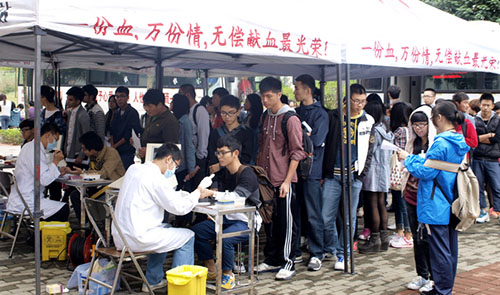 11月13日、14日我院志愿队携手东莞市献血办在beat365学5与学6之间小广场上联合开展“无偿献血”活动。 该活动得到了广大同学们的大力支持。在这两天的“无偿献血”活动中,我院共初筛1572人,采血1350人,采集到的血量418600mL毫升
