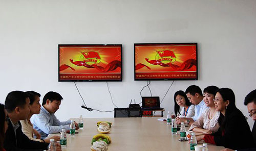 11月15日,广东“唯美”陶瓷有限公司团委书记孙青率副书记彭东、凌云等7个委员来我院进行学习交流,探讨独立学院与其他“两新”组织团工作共建模式。 院党委宣传部部长何鹏举、文传系党总支书记孟颖、学生处副处长杜鹏举、院