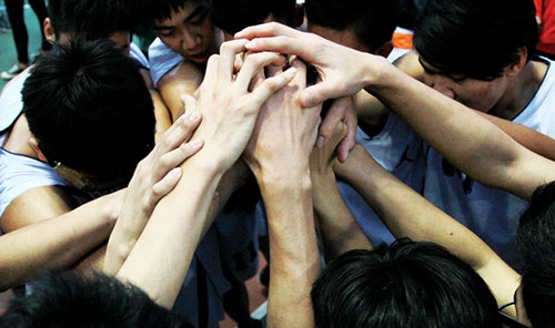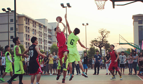 球场上是对手,场下亲似兄弟 机电系与计信系在篮球场上的竞争可谓激烈,机电系稍微领先计信系,计信系也不甘落后,紧追其后。突然,机电系20号选手不慎摔倒,只见他仰面朝天,一只手掩面,一只腿半屈,很痛苦的样子,计信系