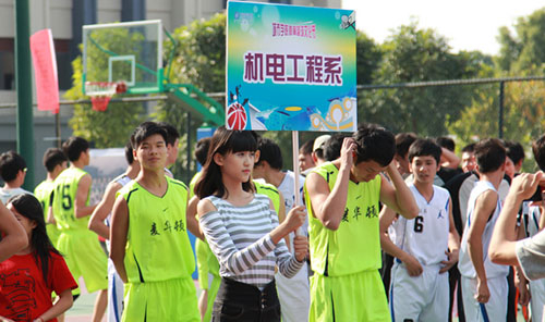机电系夺冠呼声高 看,文传系与金贸系的比赛在紧张激烈地进行,转身、侧步、上篮,金贸系队员用娴熟的技巧连连得分。“文传加油,文传加油…”在热情澎湃的拉拉队呐喊声中,文传系的健儿们亦不甘示弱,穷追猛赶,但最终还