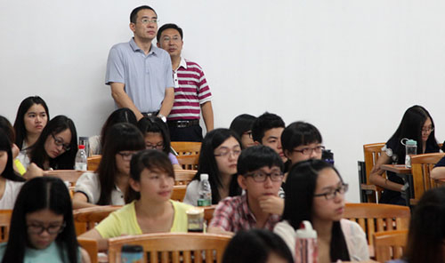 9月2日是2013—2014学年开学第一天。上午,院长杨敏林、院督学陈丁堂等检查上课情况。 杨敏林院长(左一)检查上课情 教学秩序井然