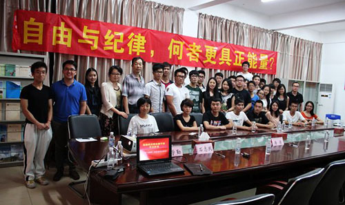 6月20日,思政部、财经系第一期学术沙龙“自由与纪律,何者更具正能量”在5A427举行。 主讲嘉宾刘学勤老师以两个日常生活的例子引入主题,然后就“自由与纪律,何者更具正能量”这一主题阐述了自己的学术观点。他认为:“自由