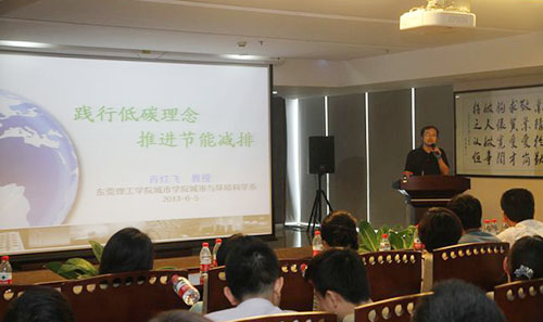 6月5日,城市学院城环系系主任肖红飞教授应邀为鸿发集团东莞子公司140多名员工做了“践行低碳理念,推进节能减排”的学术讲座。讲座内容主要是讲低碳概念产生的背景即全球气候变化、低碳理念的内涵,以及如何做到低碳和节能减排,