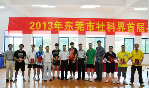 5月25日,由东莞市社会科学界联合会主办,市社科联东莞理工学院城市学院分会承办的2013年东莞市社科界首届乒乓球比赛于城院体育馆开赛。市社科联主席王思煜、副主席龙家玘和城市学院党委书记朱志德、副书记章德胜、副院长高香林观